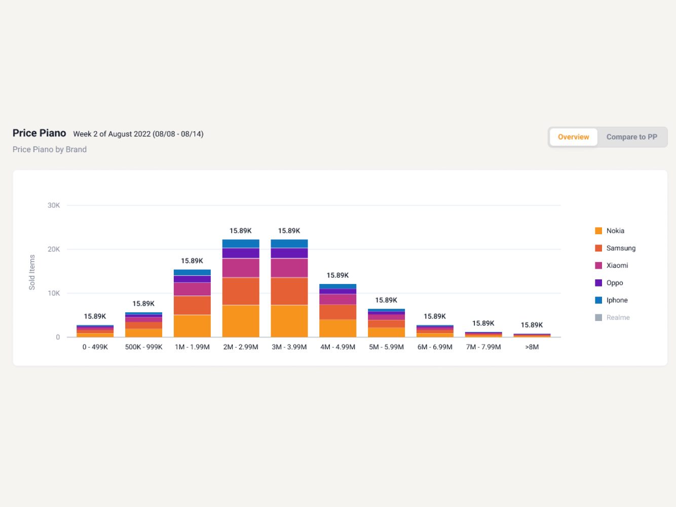 Bảng biểu này cho biết khung giá nào đang mang lại hiệu quả doanh thu cao nhất cho các Nhãn Hàng trong khoảng thời gian đã chọn.