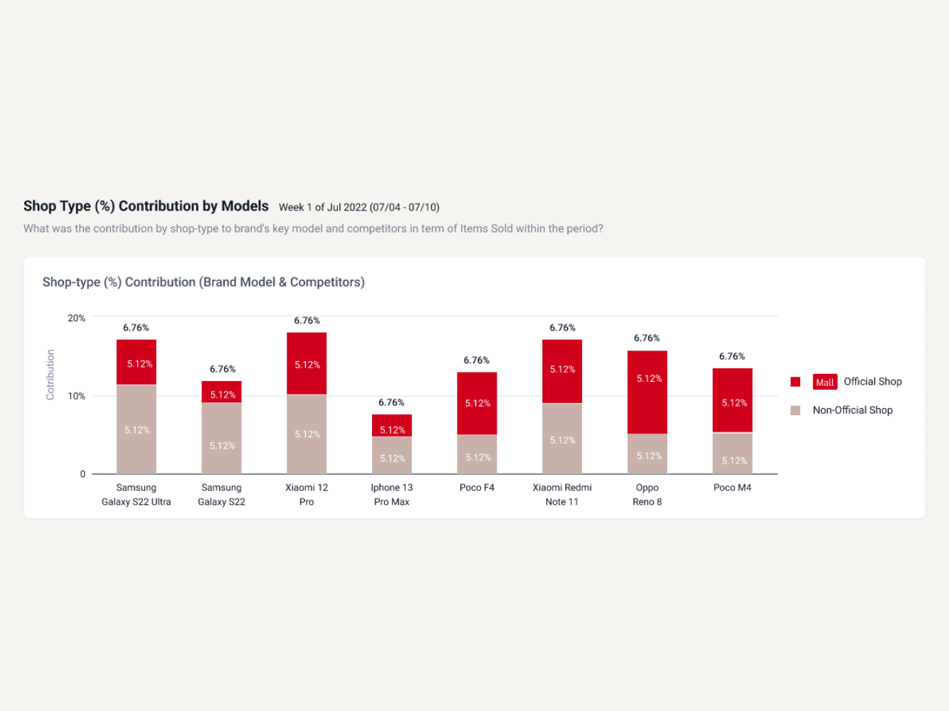 Nhìn vào biểu đồ này, người dùng EcomHeat có thể so sánh trực tiếp doanh số bán giữa hai nhóm Cửa hàng chính hãng và Cửa hàng không chính hãng.